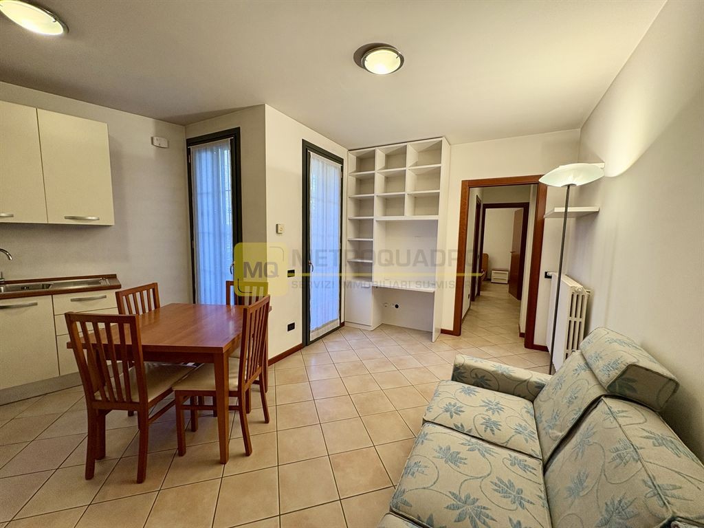 L’abitazione si apre su un luminoso soggiorno con angolo cottura, dal quale si accede direttamente al giardino e al balcone esterno. La zona notte è composta da un disimpegno attrezzato, una spaziosa camera matrimoniale e un bagno finestrato. Tutti gli ambienti, affacciano sullo spazio esterno, garantendo ottima luminosità e continuità tra interno ed esterno.